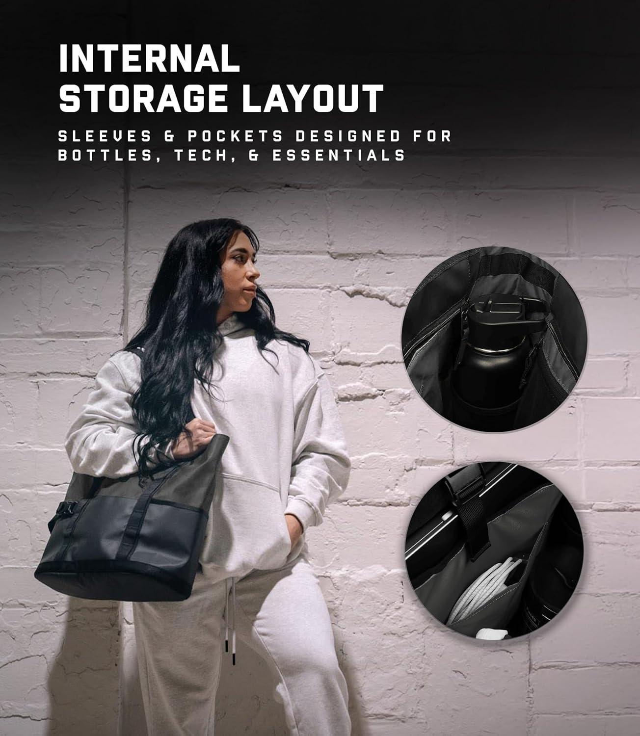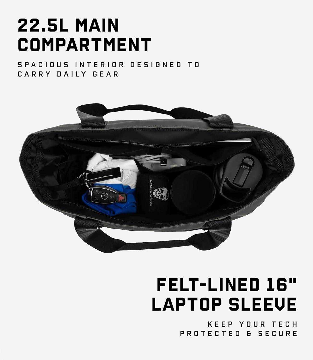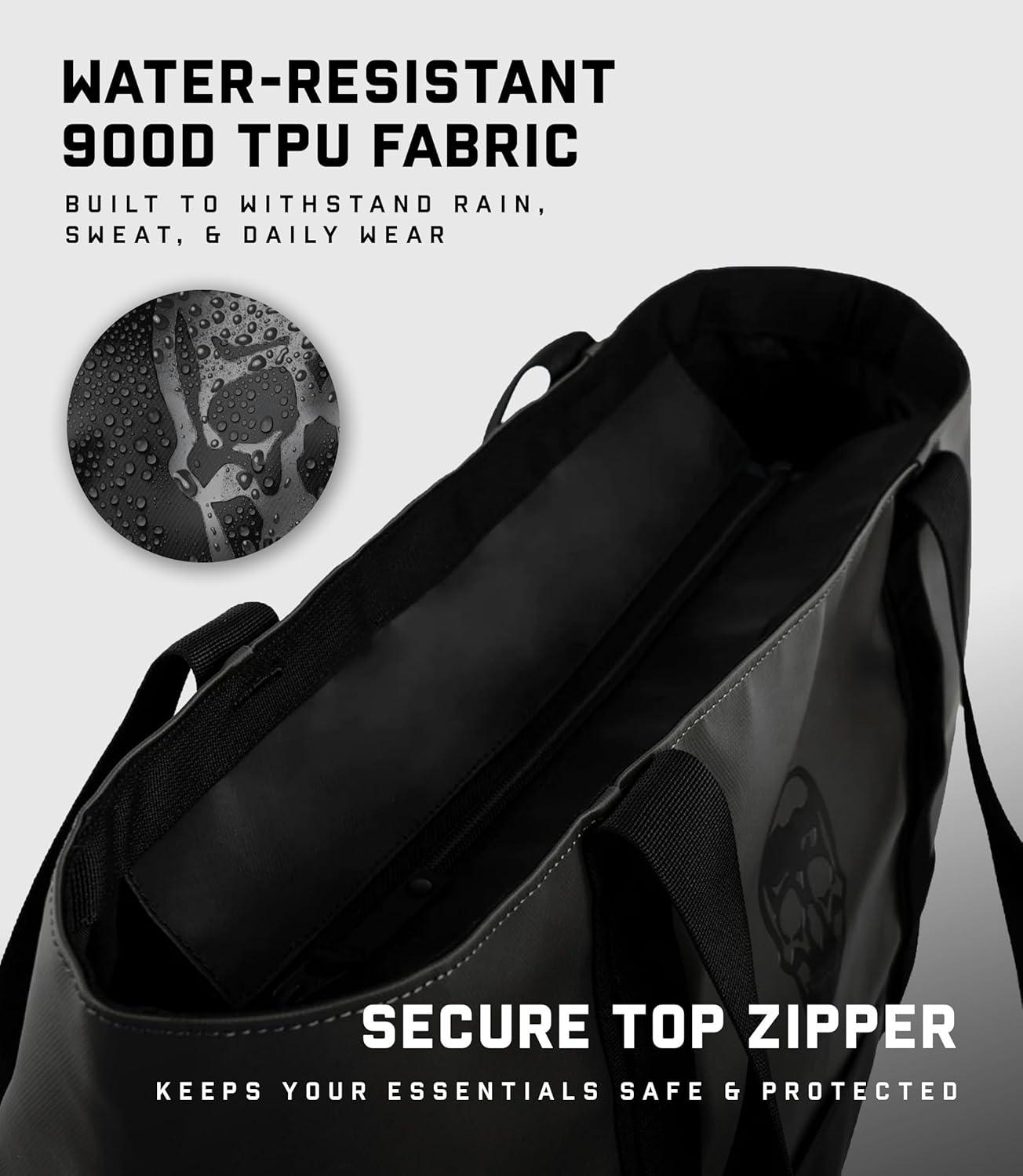 Gymreapers Gravestone Tote Bag – Large 22.5L Waterproof Gym & Travel Tote with Laptop Sleeve and Luggage Strap(Gunmetal)