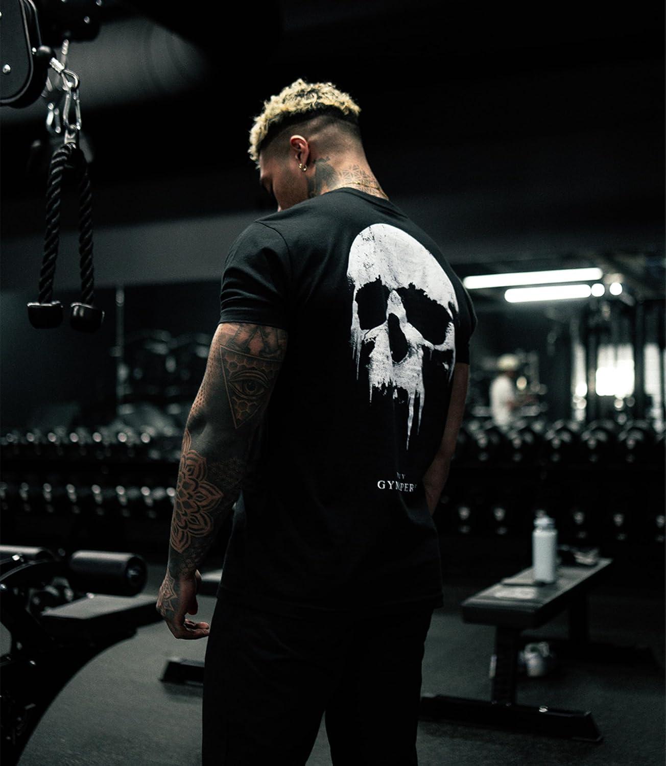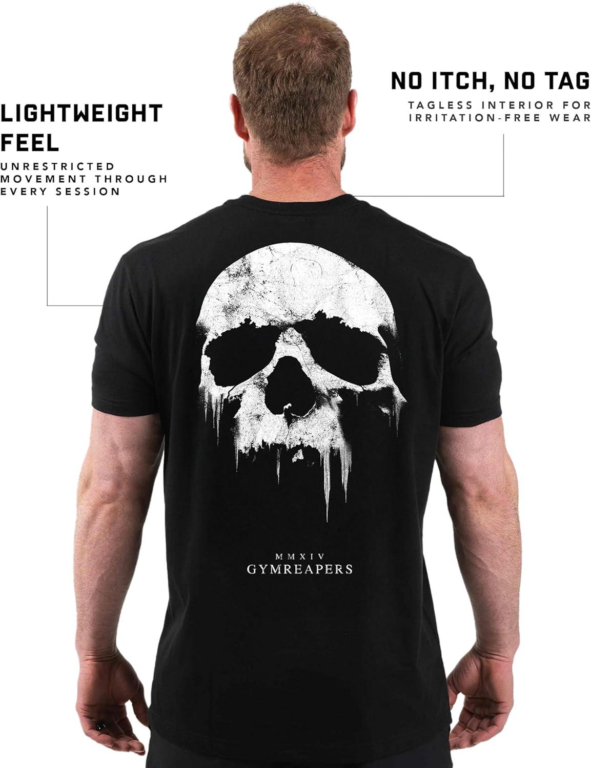 Gymreapers Skull Moisture Wicking T-Shirts for Men - Short Sleeve Workout Gym Shirts - Running Athletic Tees & Dry Fit Tshirt(Dread Mmxiv)