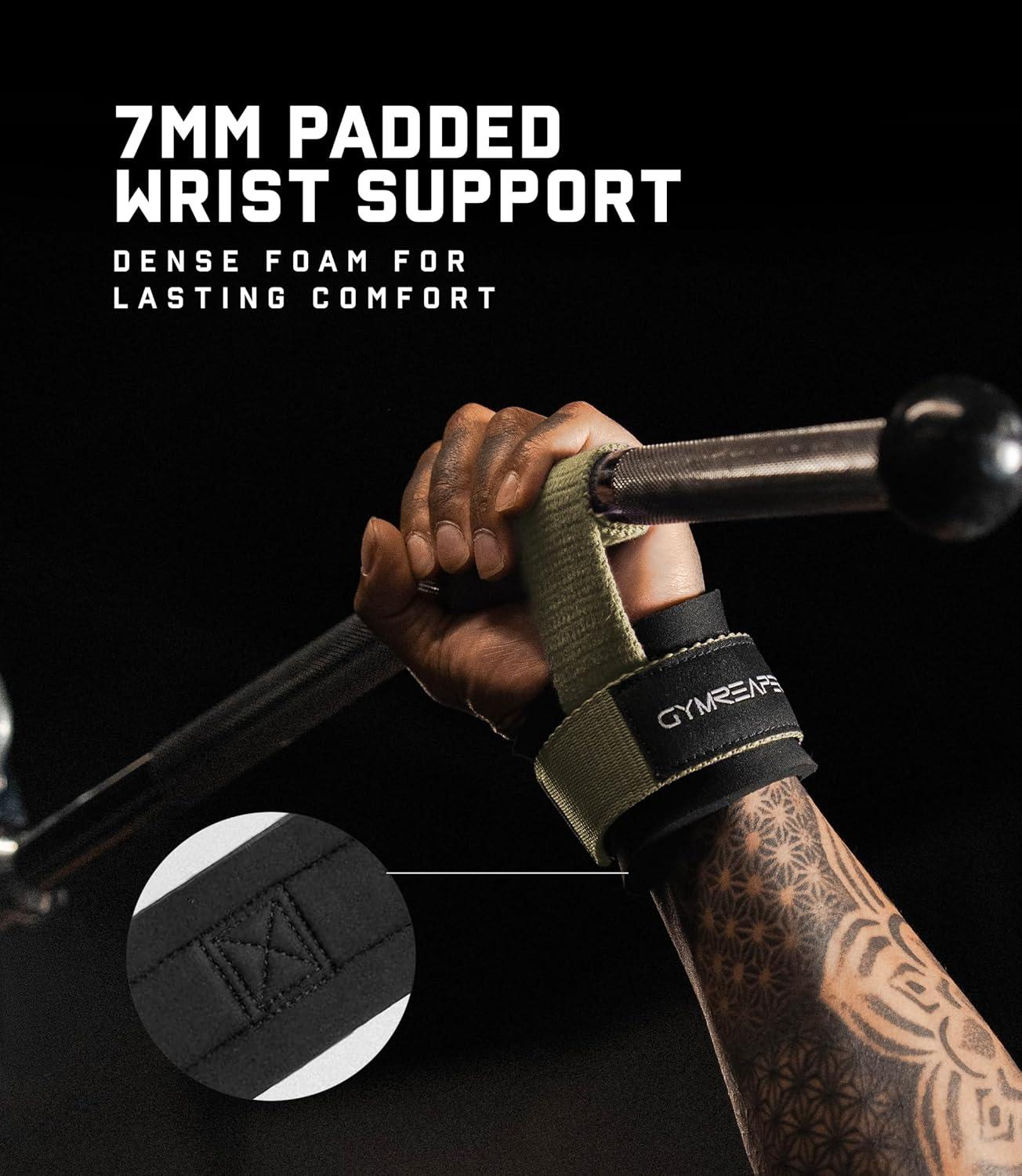 Gymreapers Weight Lifting Straps With Dowel - Wrist Straps for Weightlifting - Workout Deadlift Wrist Weights - Reinforced Stitching & Padded Fit Gym Accessories for Strength & Gym Hand Grip(Desert Sand)